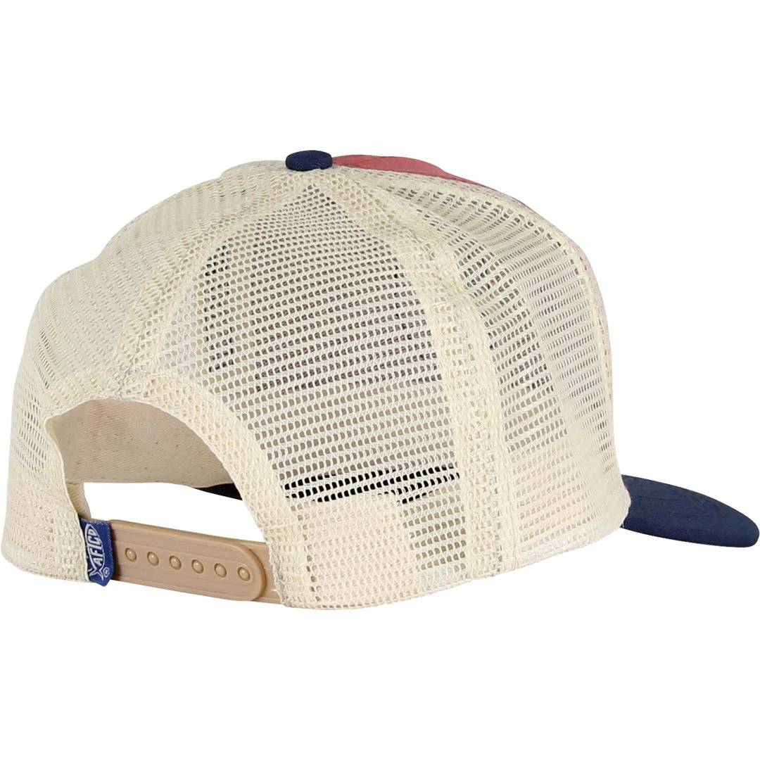 Aftco logo on a cotton trucker hat with a low curve bill. Adjustable buckle fits most.