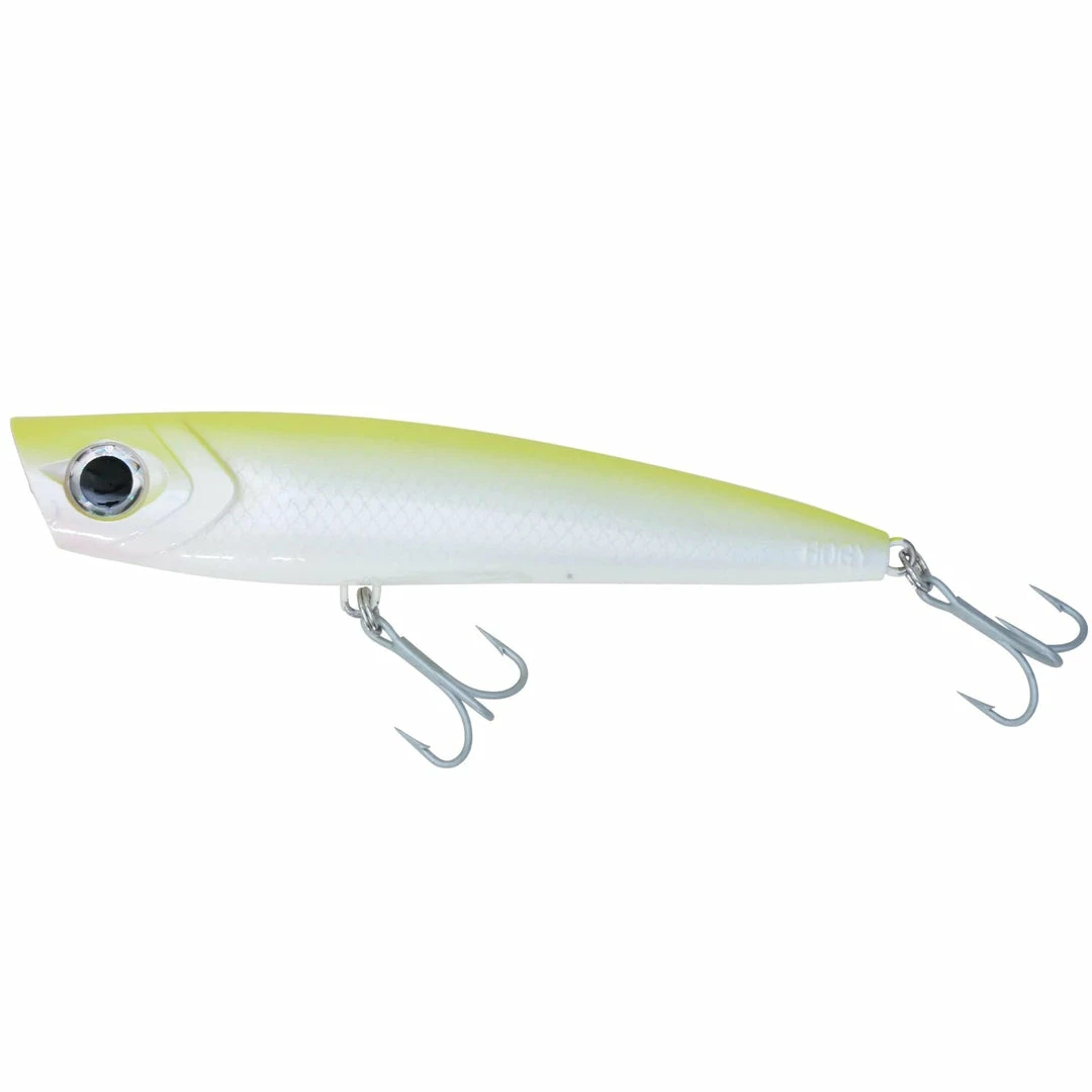 Hogy’s Charter Grade Popper presents the perfect pop and splash to call predatory gamefish from the depths or a distance away. It features multiple rattle chambers which provide for even further noise and vibration. Whether from shore of boat, each popper is rigged to fish straight “out of the package” and perform well for stripers, bluefish, and even small tuna.