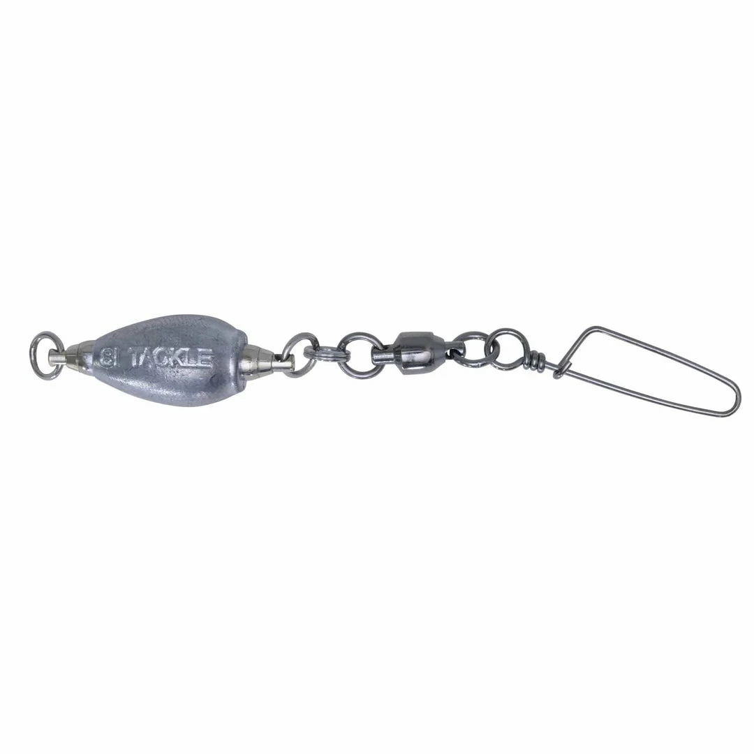 Perfect for trolling without leadcore or trolling wire, the Hogy In-Line Ball Bearing Trolling Weight is a great option to get lures and other trolling baits down into the depths and into the strike zone. Double ball bearing swivels reduces line twist, keeping your line in perfect condition.