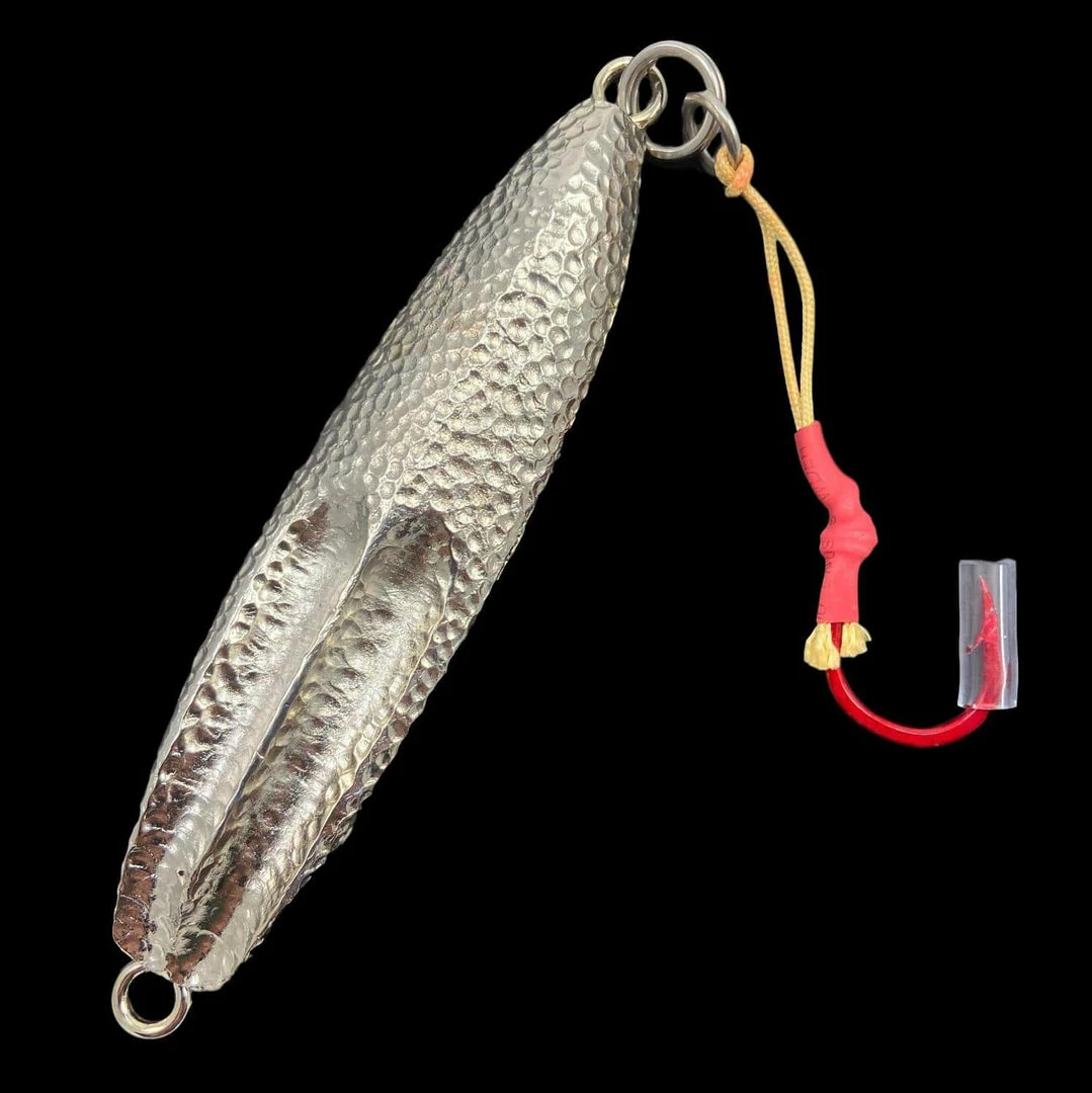The 4.5oz model comes with a 6/0 VMC Siwash hook tied with white bucktail. All other larger models come with the VMC Tuna Tamer Assist Hook that is attached with 300lb Kevlar cord and a 300lb Owner Solid Ring.