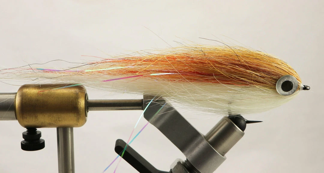 Another beautiful fly from LI Flies Mike. This 6″ fly is tied with Squimpish Fiber on a Partridge Sea Beast hook in size 4/0. In either Herring or Bunker colors these flies are sure to catch big bass.