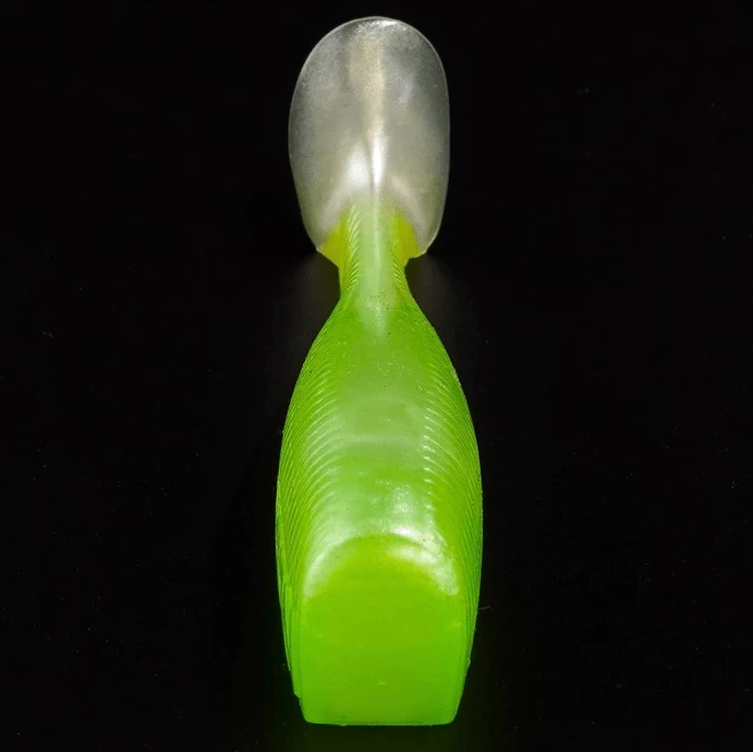 This particular paddle tail has a thicker profile size in comparison to others in the market, giving a unique profile that matches many forage species, while also reducing its body roll which gives it a much more natural swimming action. Its stockier profile also reduces its vulnerability to current, allowing you to stay in the strike zone longer with a much more naturally swimming bait.