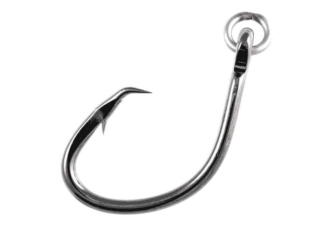 The Super Mutu Ringed Circle Hook is Owner’s short shank, heavy gauge, up to the task no matter how big the fish is hook for big chunk baits and rigging live baits. Adding a ring allow live bait to swim more naturally and also adds another pivot point during a fight with a fish potentially wearing a smaller hole in a fish’s mouth during the fight.