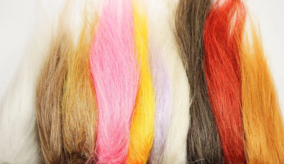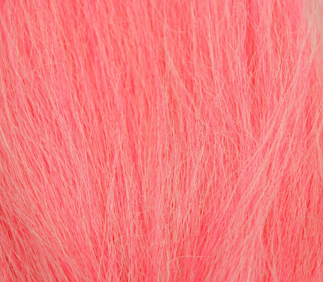 Squimpish hair is a synthetic fly tying material best described as a cross between bucktail and polar bear. The fibers come in a patch like craft fur and lengths ranging from 4”-12”. The listed length is the longest working material. Many examples have “underfur/guard fur”. All examples are tapered in length. As Squimpish hair is a 100% custom product, there is a wide range of volume, length and densities that vary from color to color thus the unit size or “square inch x square inch” is not the same from color to color.